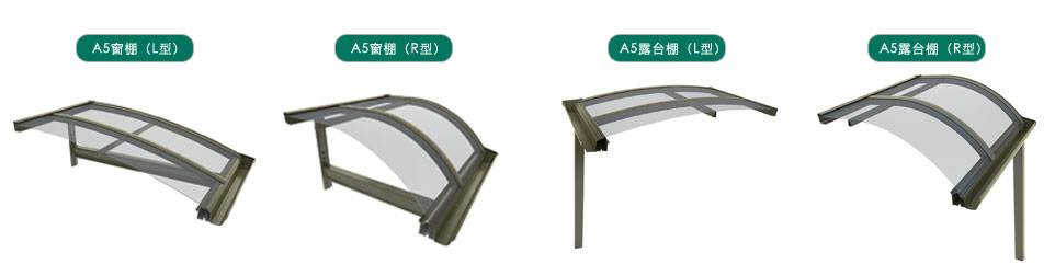 款式:A5款窗棚(L、R型)、A5款露台棚(L、R型)